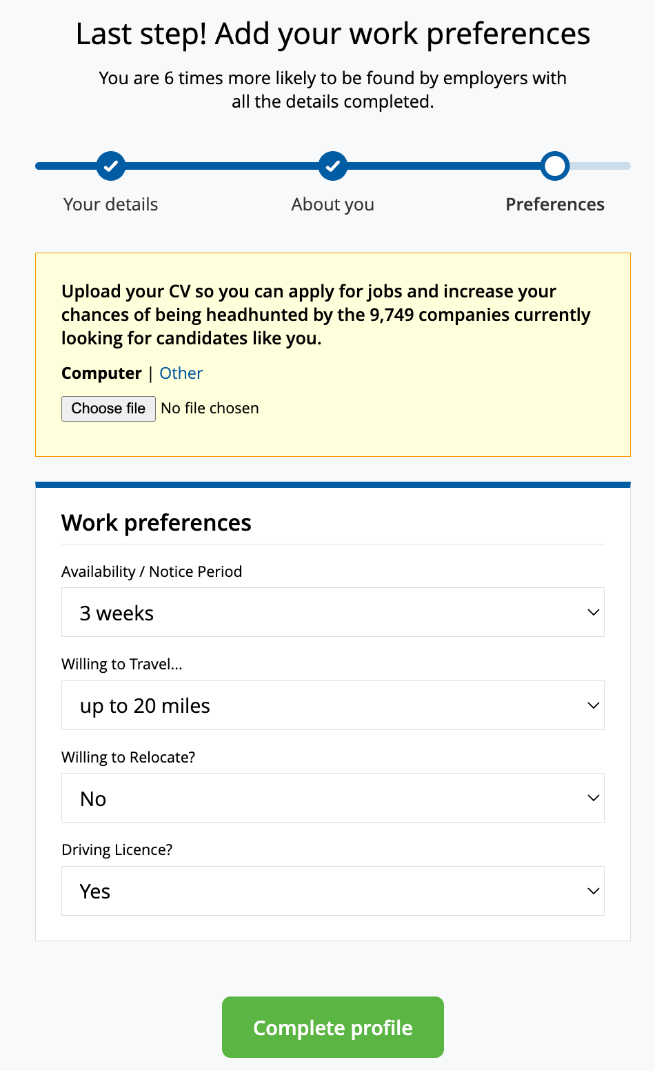 CV Library only lets you have one version of your CV on the site, so if you want to use a different version of your CV, you’ll need to upload it from your computer.