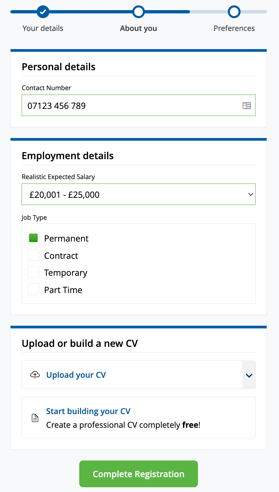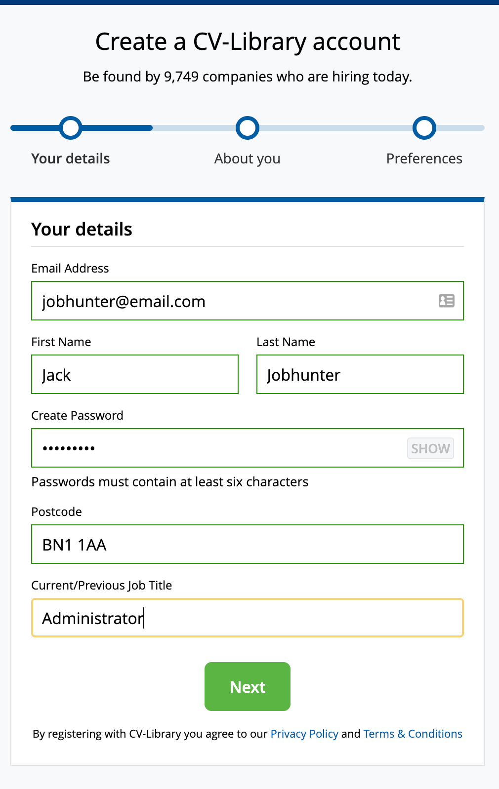 To access CV Library’s services, we recommend registering an account. Click through these images to see the sign-up process: