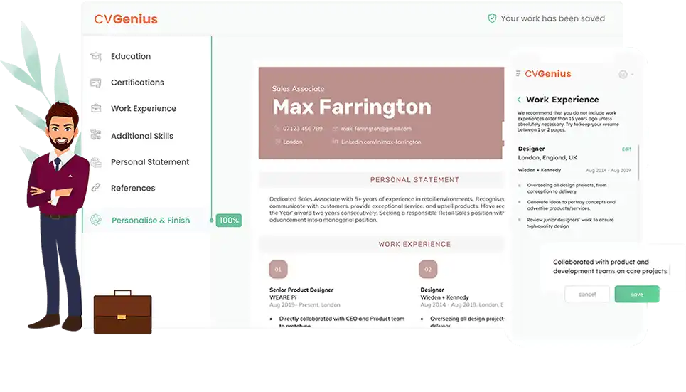 Knowing how to write a cover letter that catches an employer’s attention for the right reasons is challenging. Our AI-powered cover letter builder makes creating a job-winning cover letter much more simple. Create sentences tailored to the job advert, and use our built-in skills selector (containing industry-specific phrases for thousands of job types) to generate a unique, effective cover letter in less time than it takes to drink a cup of tea.