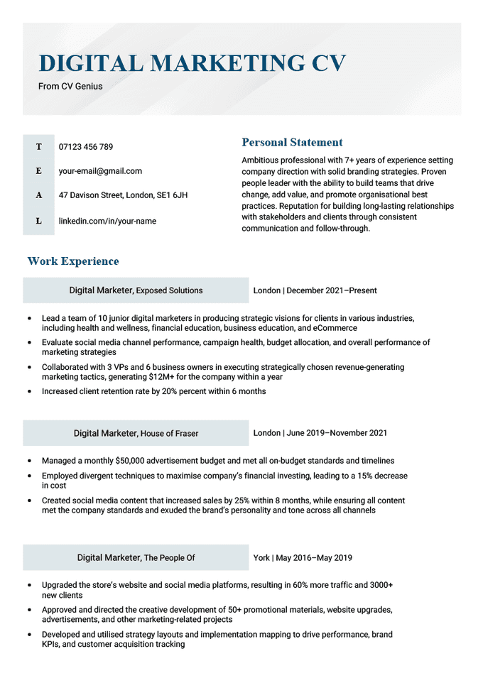 - Created social media content that increased sales by 25% within 8 months, while ensuring all content met the company standards and exuded the brand’s personality and tone across all channels