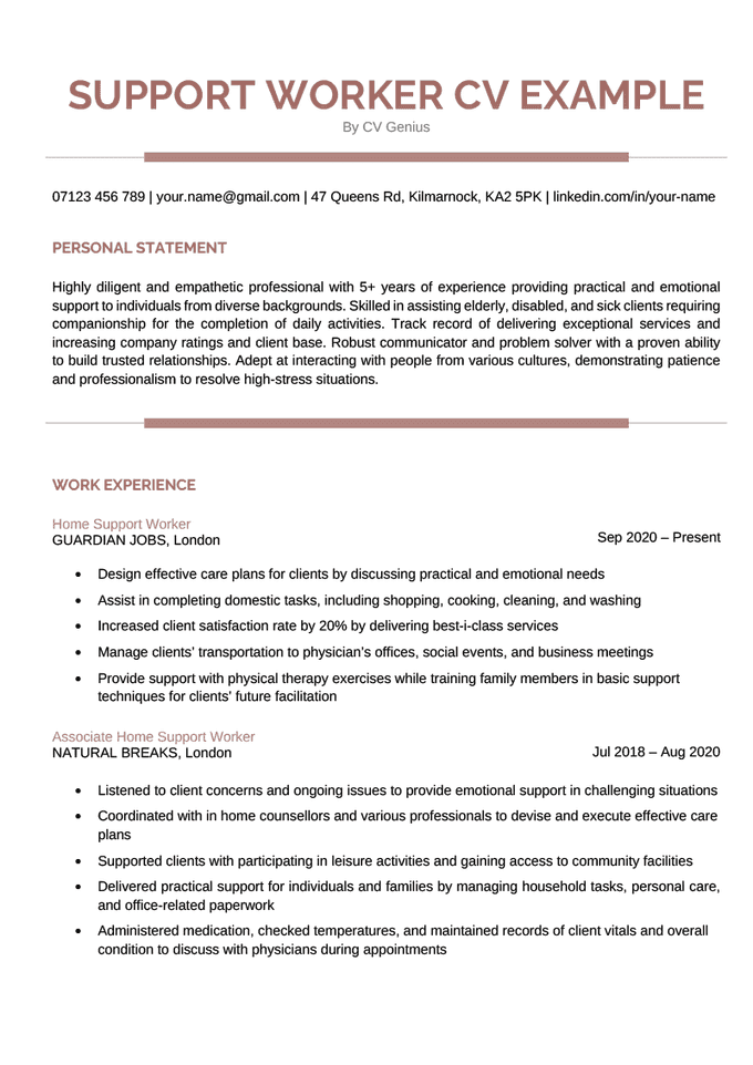 - Supported clients with participating in leisure activities and gaining access to community facilities