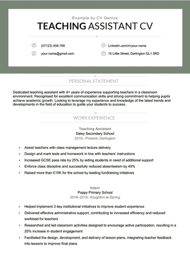 Here’s an example of a job-winning personal statement for a teacher CV: